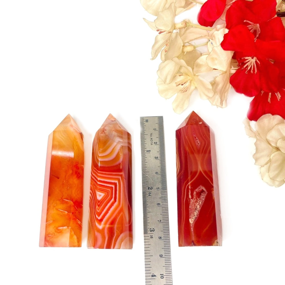 Carnelian boosts confidence and the power of expression. It increases energy and stamina and brings passion to romantic relationships. It helps to keep emotions in control and helps remove any fears of death. It protects against envy, fear, and rage, and helps to remove sorrow. It helps in discovering one's creative talents. Carnelian is a sacral chakra stone.