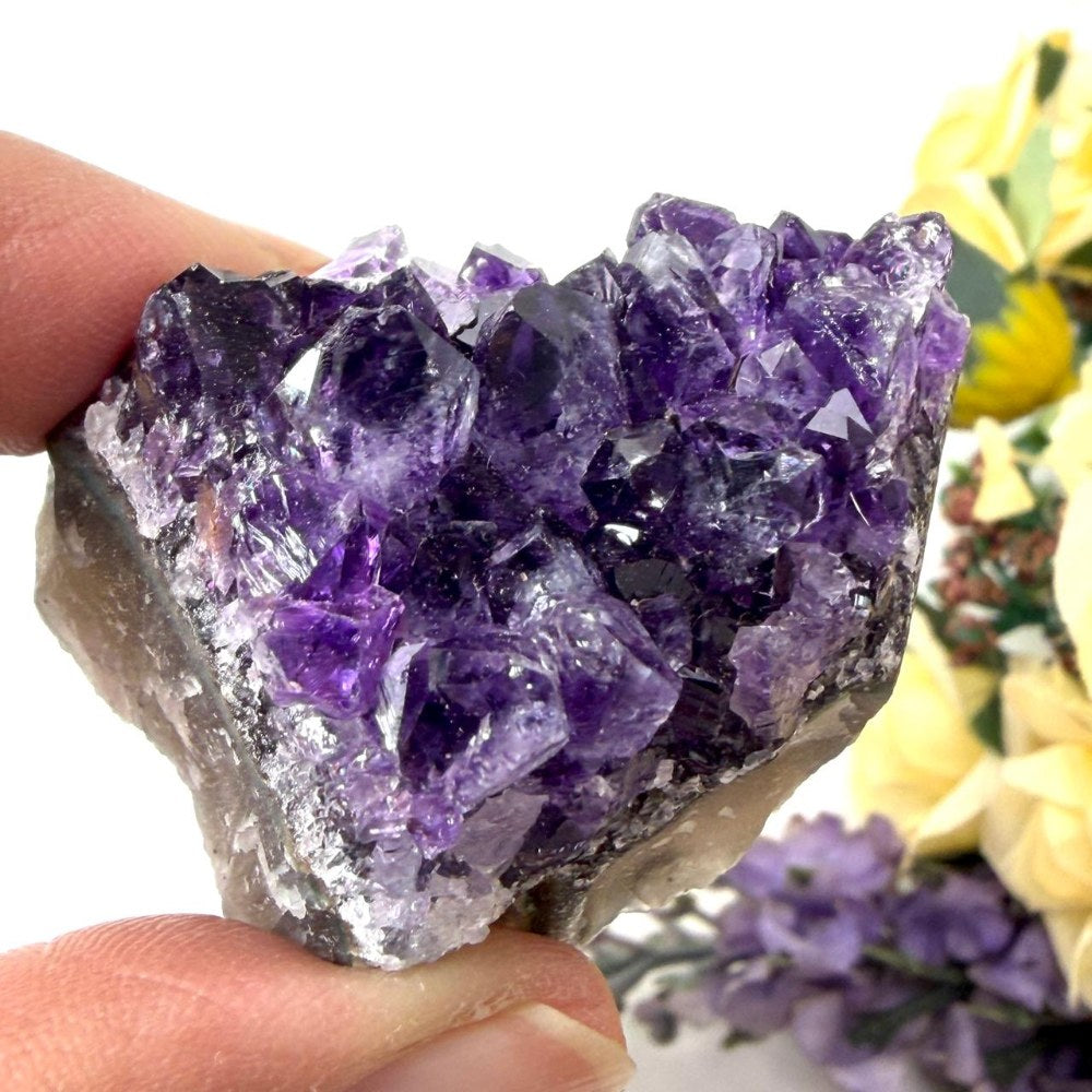 These Amethyst clusters are a deep purple and of AAA Extra quality from Brazil. Amethyst eases mental stress and anxiety and helps to clear negative thoughts and restlessness. It is one of the best stones for meditation and healing. It brings wisdom to one's thoughts. It works with the third eye chakra and enhances intuition and psychic gifts. It is known to help in curing all kinds of addictions. It is a stone of 'spirituality and contentment. It is known as a master healer and is used for healing by energy healers. When used in cluster form, the energy of this stone is amplified and works in a larger area. The results can also be seen faster. The weights and sizes are approximate.