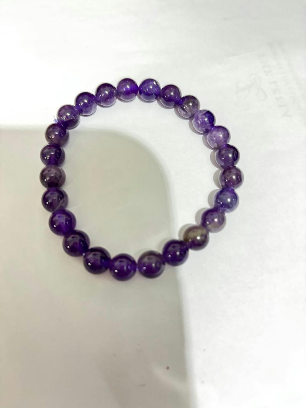 A gorgeous amethyst bracelet – the stones have a rich, vibrant purple hue with a beautiful natural translucence. Smoothly polished and comfortable to wear, it exudes a calming, uplifting energy, making it perfect for everyday elegance or special occasions