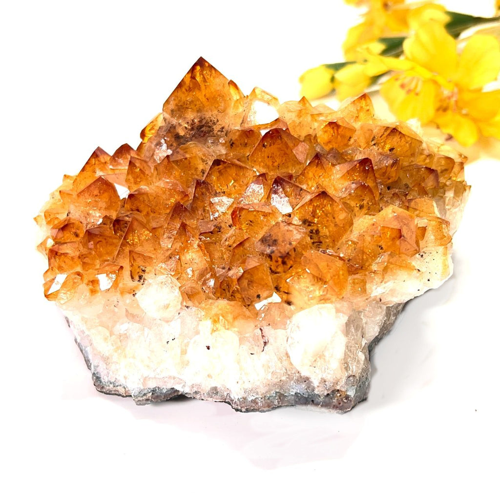 These Citrine clusters are from Brazil and are AAA Extra quality. Citrine is a stone of warm energy and brings optimism. It brings professional and career growth and works on material abundance. It is known as the manifestation stone and clears any negativity without absorbing it. It also helps remove fears and anxieties and builds self-confidence. Citrine cluster can also be used as a clearing and charging space for your other crystals.