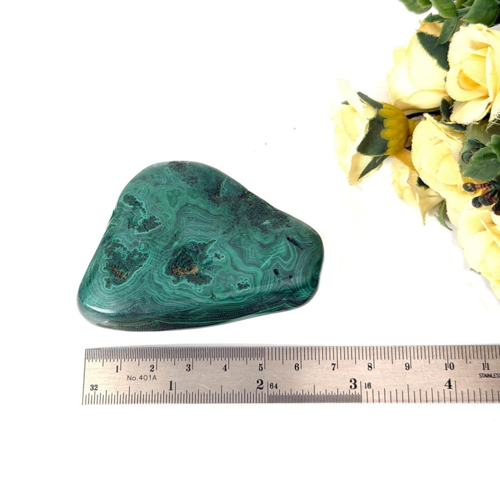 These free-form Crystals are polished on one side or both sides. One can see the natural color shades and swirling patterns in them. A stone of transformation, malachite also helps sustain a good situation. If looking for a change in any area, malachite helps to achieve abundance in that area. It helps release the past and move on. It is a stone of spiritual renewal, new love as well as material abundance. It also helps in handling depression and anxiety. It encourages love-based relationships instead of need-based ones.