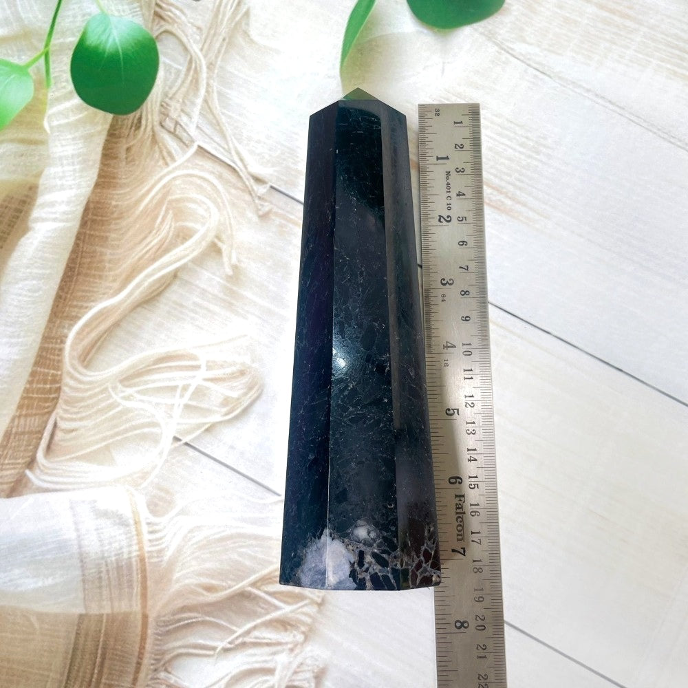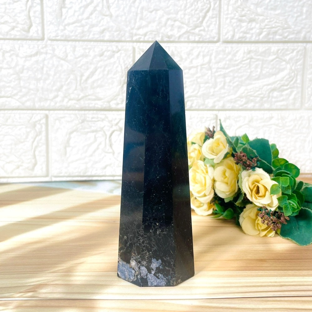 Black tourmaline towers are rare in this size. These towers are excellent use in making a large grid to be used in the protection of a room or a larger space. The y can be placed in a meditation room for grounding and protection.