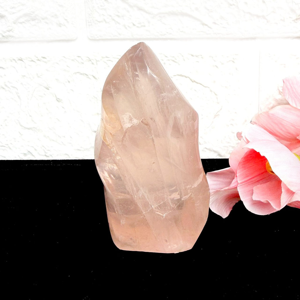 Rose Quartz Twisted Flame Option E (426 g; height 12.5 cm)