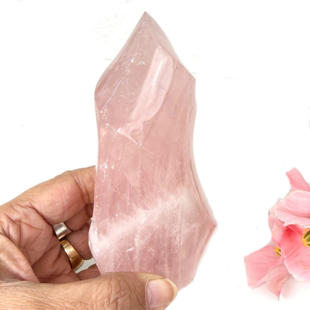 Rose Quartz Twisted Flame Option C (243 g; height 9 cm)