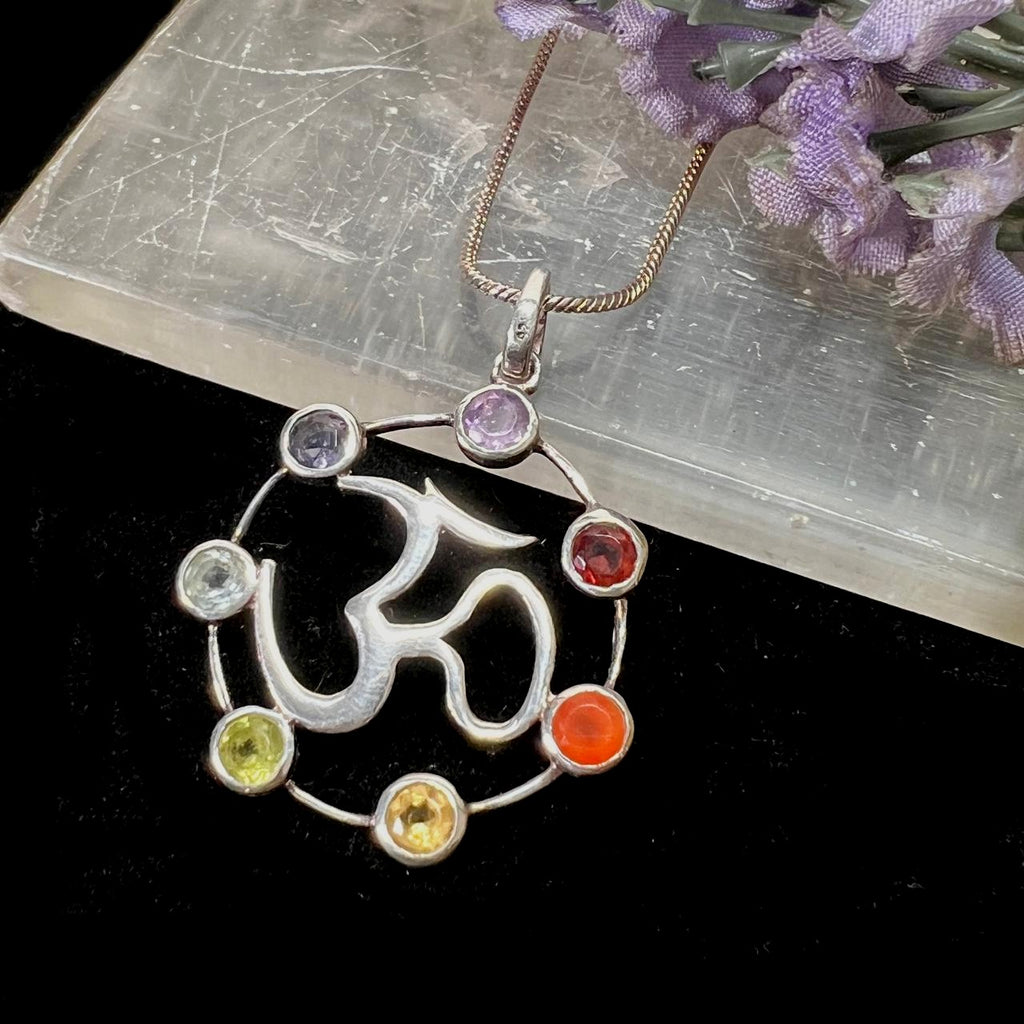 Round Aum Pendant - Amethyst, Iolite, Aquamarine, Peridot, Citrine, Carnelian, and garnet.