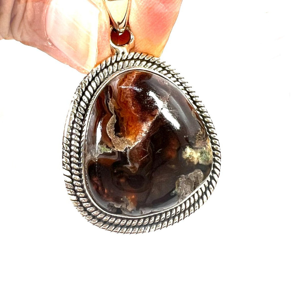 Fire Agate Pendant in Silver- Premium Collection ( Psychic Protection)