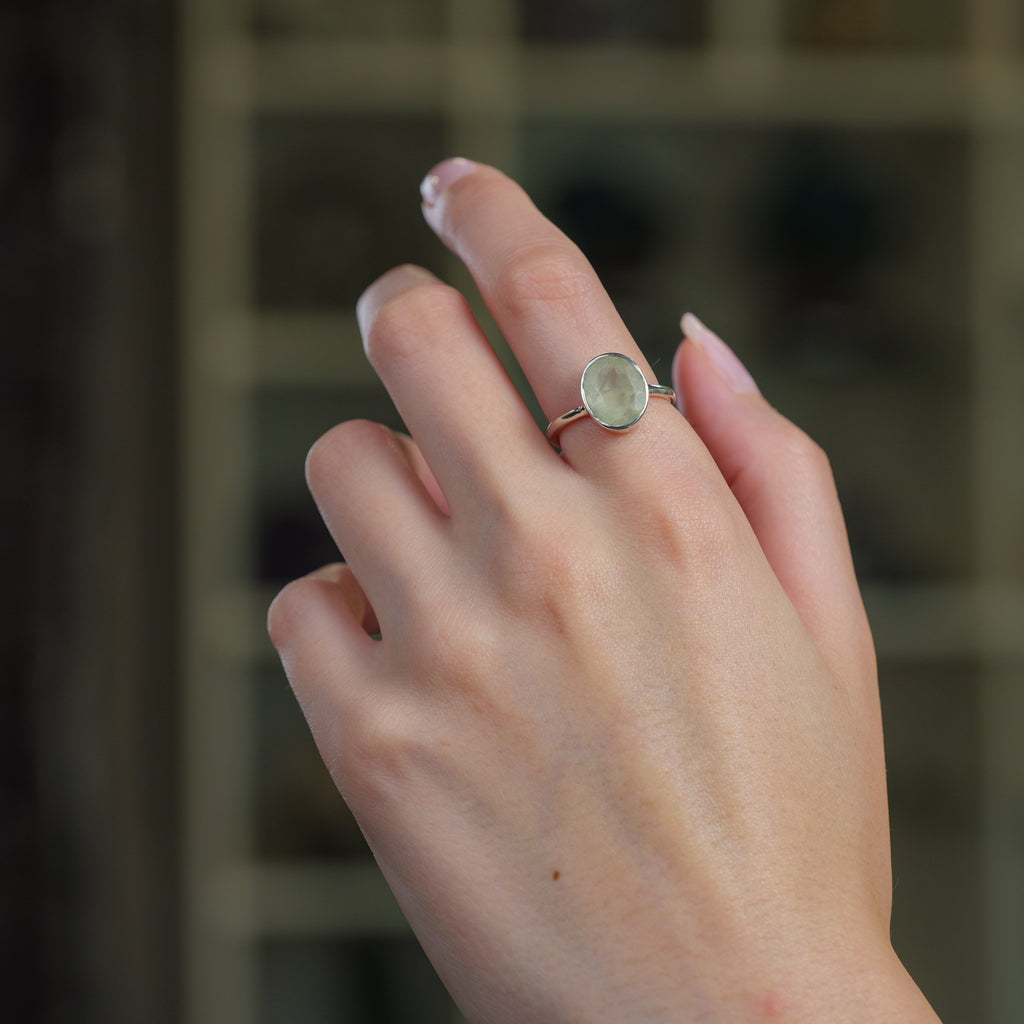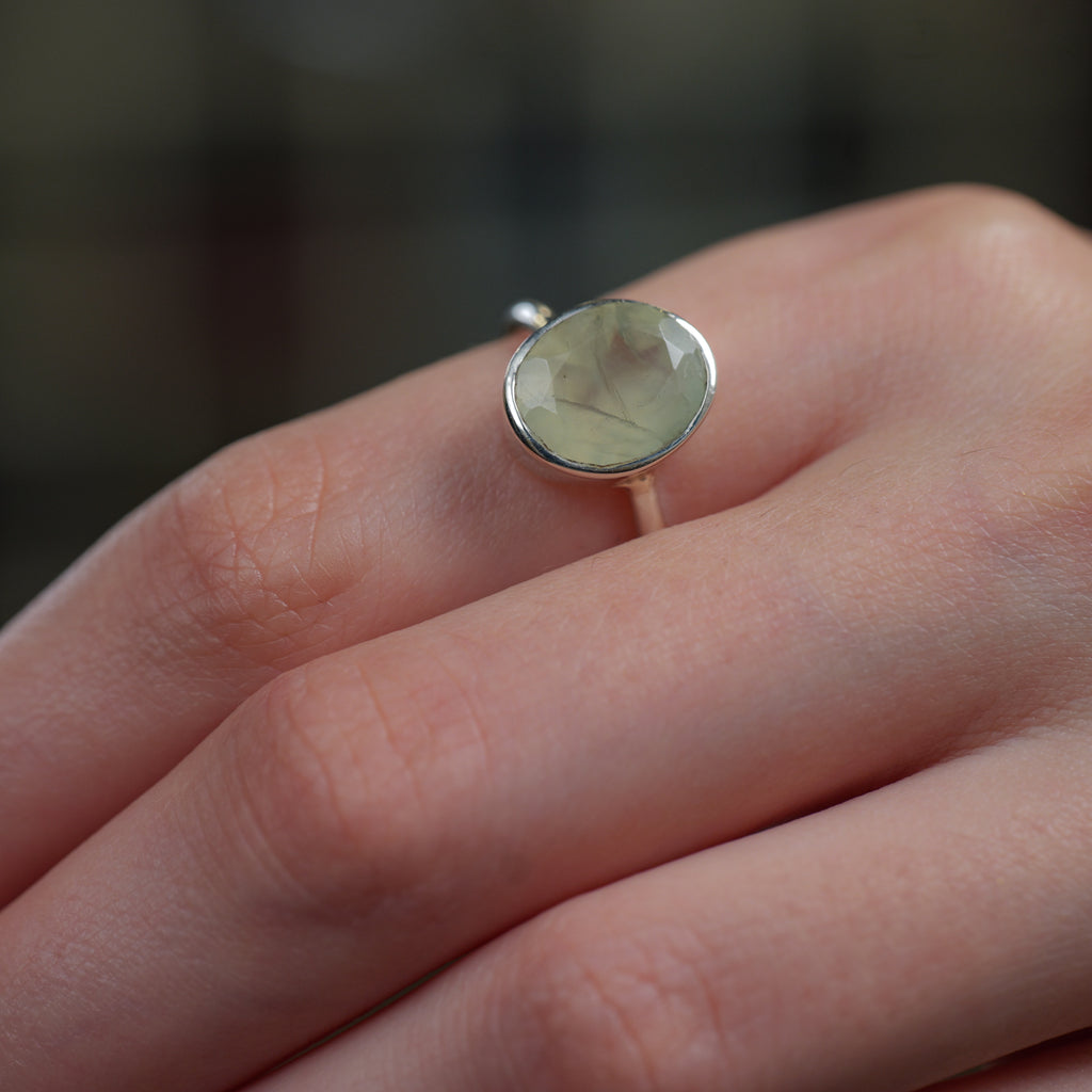 Prehnite Adjustable Ring in Silver
