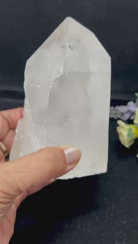 These clear quartz towers are natural and have not been polished. Their tips are not perfect and some of them may have smaller crystals attached to them. Since they have not been shaped and corrected the base is also not perfect. The energy of these towers is completely untouched and powerful.