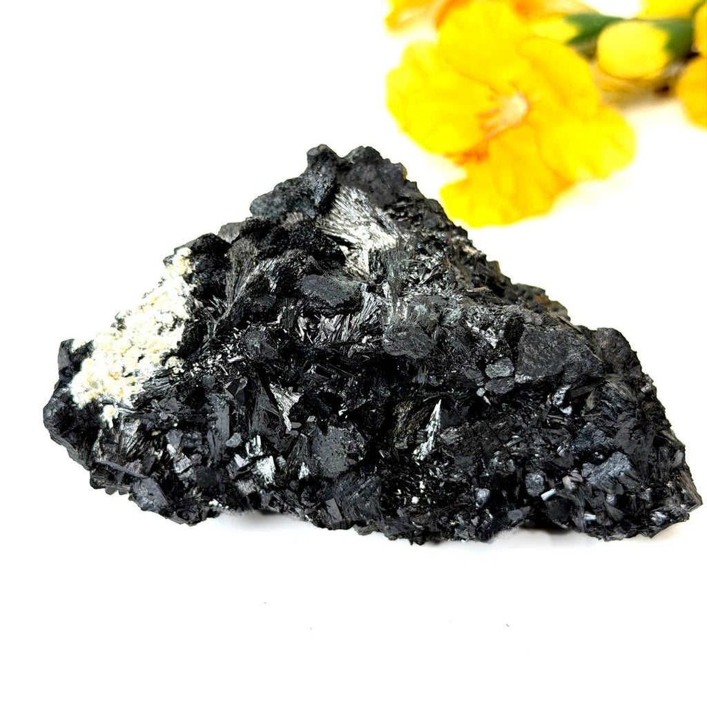 Black tourmaline in cluster form is rare. This quality of black tourmaline is very soft and must be handled with care. Black Tourmaline can be placed at the entrance of one's home for energetic protection. One of the best protection and grounding stones, black tourmaline is a root chakra stone. It is known to protect from negative energies or any destructive forces. It helps in neutralizing one’s own negative thoughts and inner conflicts. It’s also good for protection against electromagnetic radiation. Use it on all corners of your room or home as protection, keep it near computers or television sets, or just anywhere in your home or workspace to clear negative energy. It’s also a great stone to hold if going through fear or anxiety of some kind.