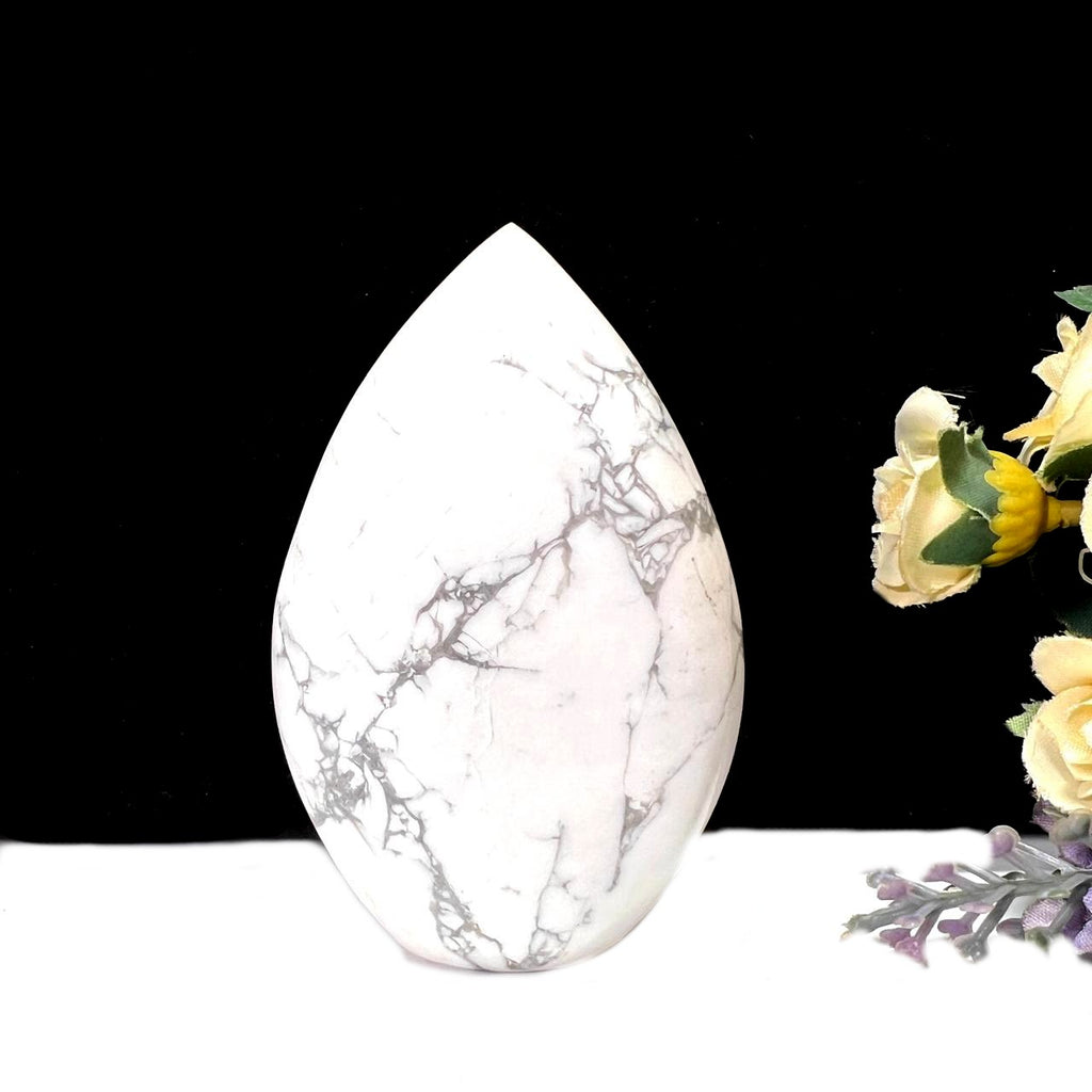 The Howlite free forms are shaped like a fixed flame. All the options are between 3.25 to 3.5 inches in height. Howlite is a stone of awareness, peace, and calm. It gives the strength to let go of unhealthy attachments and old emotional pains. It calms you if you are upset, and removes your anger. It can be for the treatment of anxiety disorders and other stress-related diseases. It is known to boost patience.