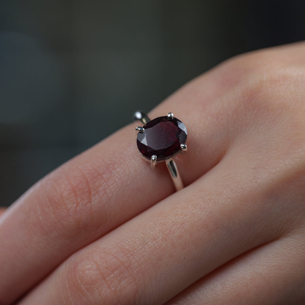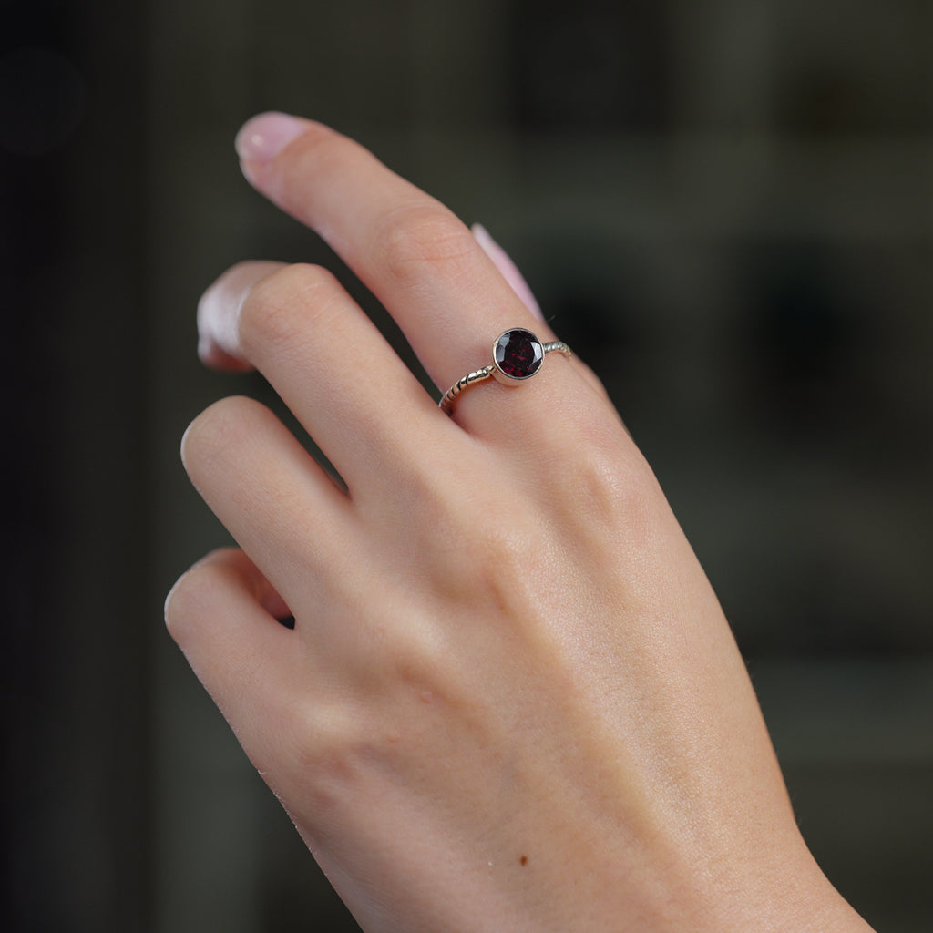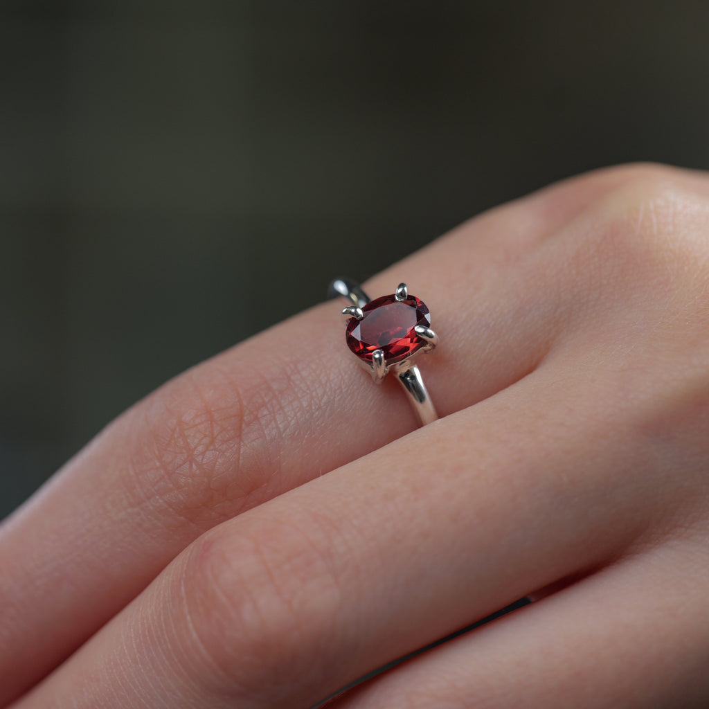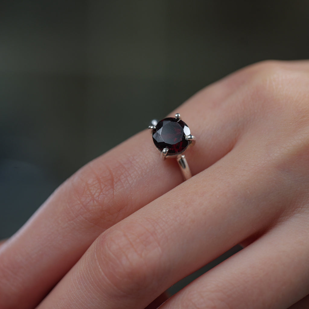 Garnet Adjustable Rings in Silver