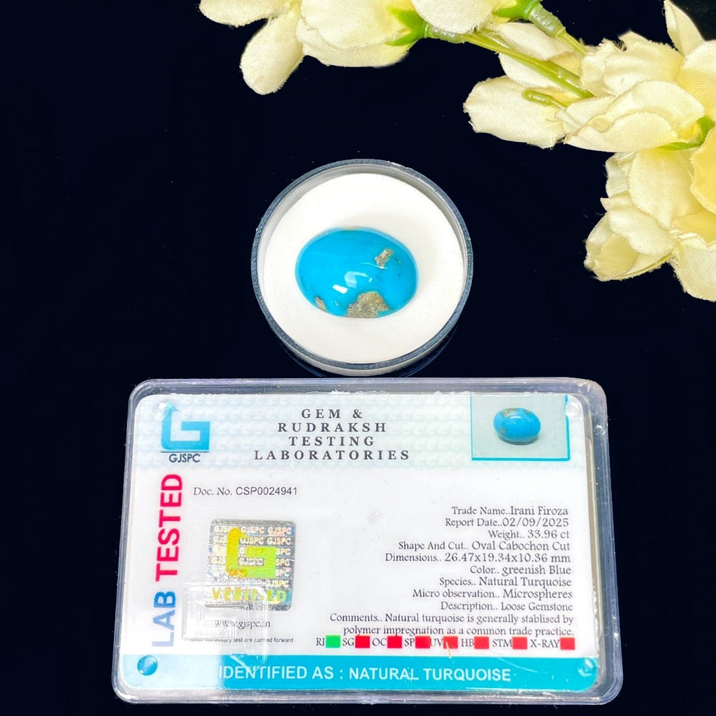 Natural original polished turquoise from Iran. Irani turquoise is popular for its powerful healing properties. Turquoise is a lucky stone, a healing stone, a protection stone, all rolled into one, and is one of the oldest crystals discovered. A powerful stone for healers as well as for those being healed. It aids communication and enhances psychic abilities. Meditating with a turquoise stone can help communicate with beings from higher dimensions. The vibrations of turquoise work well with the throat chakra as well as the higher heart or the upper heart which deals with forgiveness, divine love, and compassion.