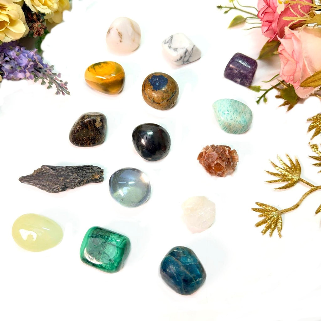 If you are a crystal healing practitioner or use crystals in your healings and meditation, then this collection of advanced-level crystals is a must-have for you. These are higher vibration crystals, and some are rare, too. Crystals included in the box are Aquamarine, Mookaite Jasper, Titanium Aura Quartz, Howlite, Sputnik Aragonite, Black Kyanite, Pink Opal, Elite Shungite, Blue Apatite, Amazonite, Bronzite, Malachite, Azurite, Apophyllite, and Lepidolite.