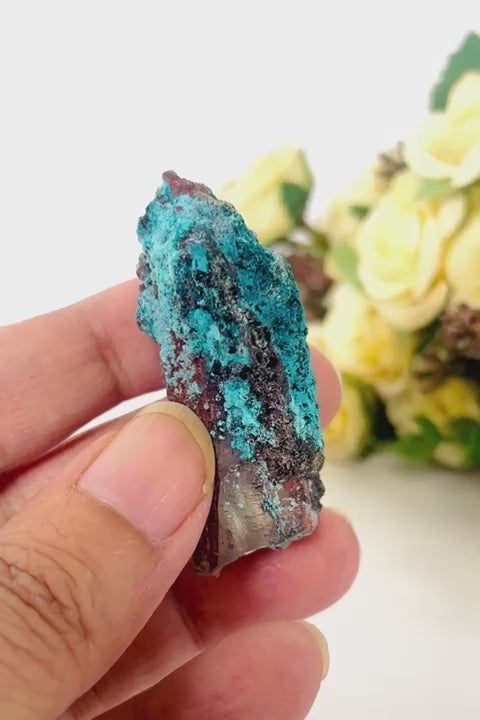 Chrysocolla on Quartz Mineral Specimen (Tentadora Mine, Peru)