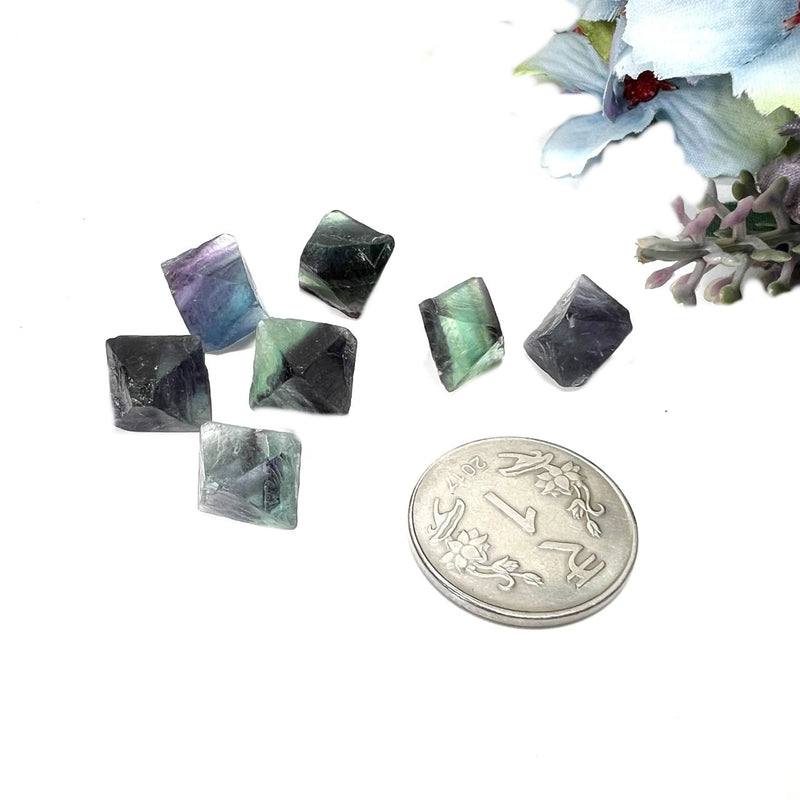 These are natural fluorite octahedrons. They may not be perfect as they are not polished. Fluorite carries a calm, stable frequency that brings order to chaos and scattered and discordant energies into cohesion and harmony. It supports spirituality and thought, focus and concentration, and balance in all aspects of one’s life. Known as the “Genius Stone,” Fluorite boosts aptitude and discernment, the absorption of new information, and helps one work through complex issues. Fluorite comes in many color varieties, and while each manifests its abilities in different ways, all serve the mental body, brain, and energetic levels of being.