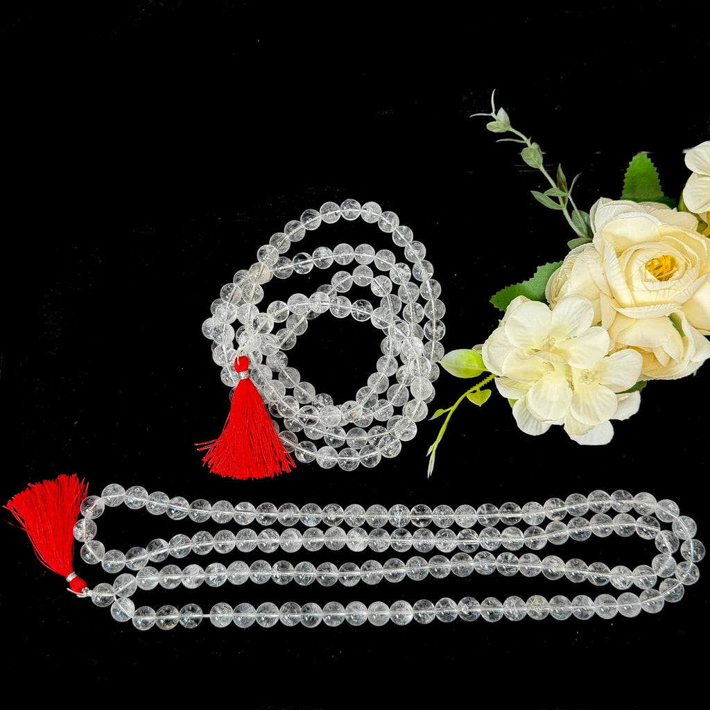 Clear Quartz Round Beads Jaap Mala Necklace (Meditation & Spiritual Growth)