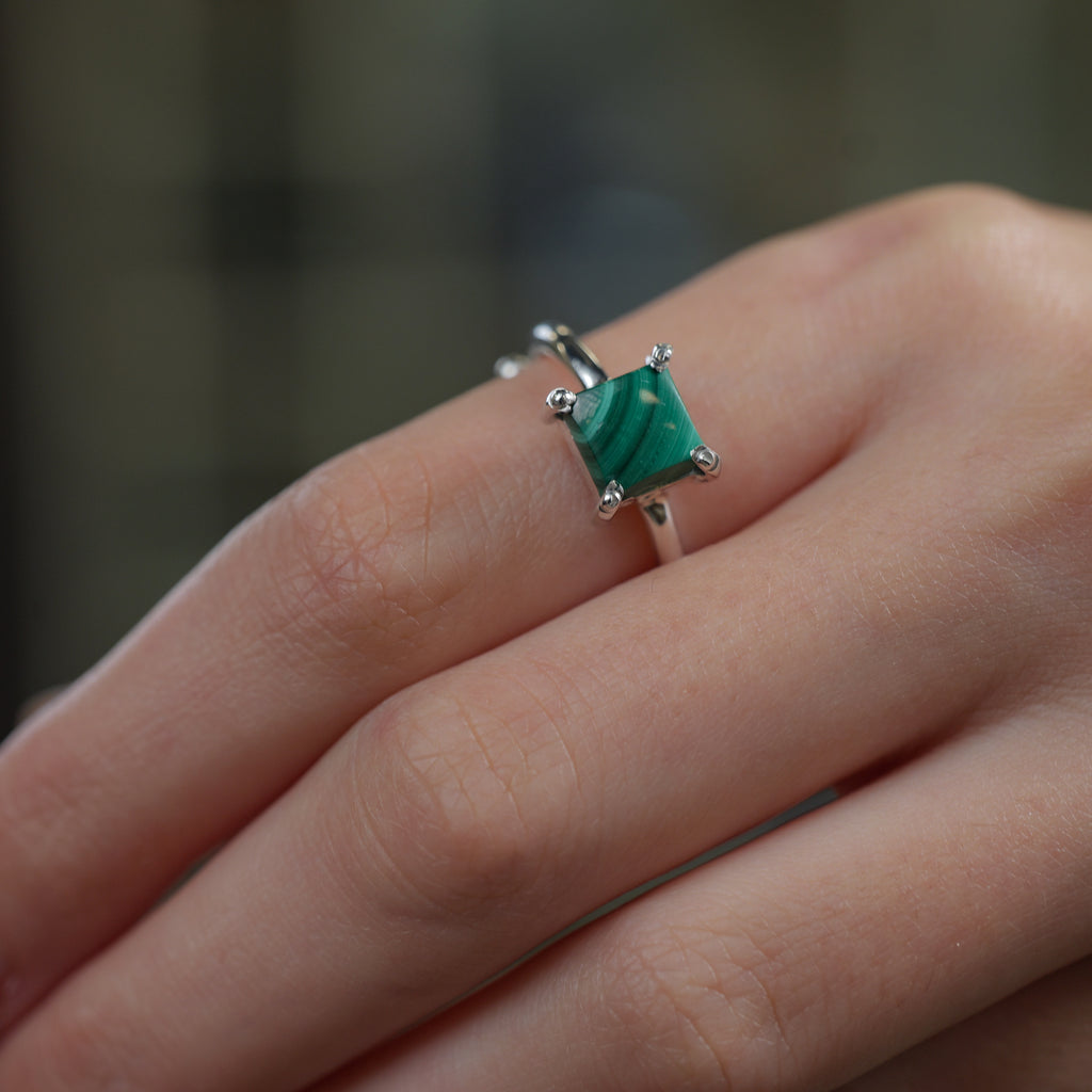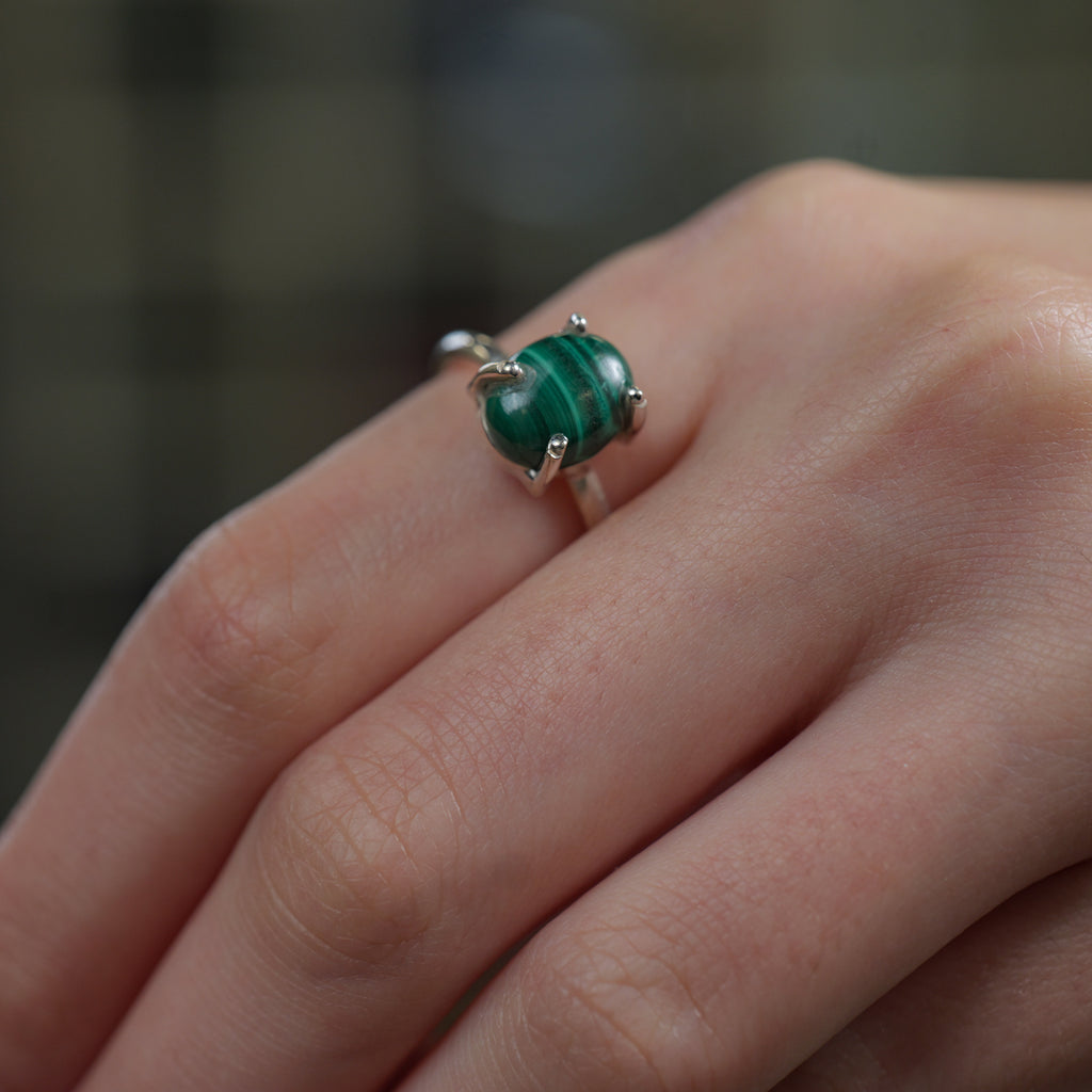 Malachite Adjustable Ring in Silver (Spiritual Renewal)